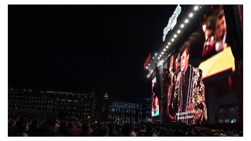 Tras la proyección, el Mariachi Estrella de América interpretó los grandes éxitos del cantante, culminando la velada con un espectáculo de pirotecnia que iluminó el cielo capitalino, sellando una noche dedicada al amor y al recuerdo de uno de los más grandes artistas de México.