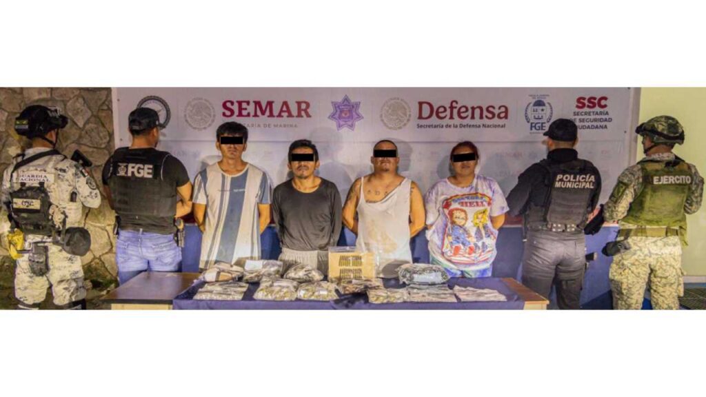 La Fiscalía General del Estado informó que, en coordinación con la Secretaría de la Defensa Nacional, la Guardia Nacional y la Policía Municipal, se logró la detención de cinco personas señaladas por su presunta participación en delitos de homicidio calificado y narcomenudeo en el municipio de Benito Juárez.