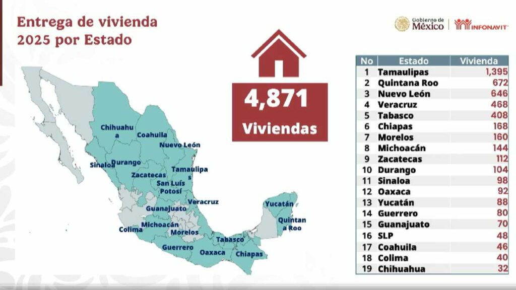 Detalló que, de las 4,871 viviendas que se entregarán en la primera etapa de 2025, 672 corresponderán a Quintana Roo, lo que nos posiciona como la segunda entidad con mayor número de viviendas.