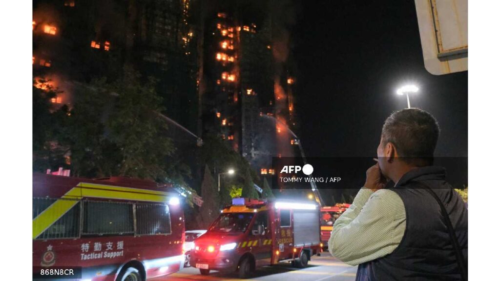 El incendio consumió las estructuras de al menos tres edificios antes de extenderse hacia otras áreas del complejo residencial Wang Fuk Court, lo que complicó las labores de los bomberos.