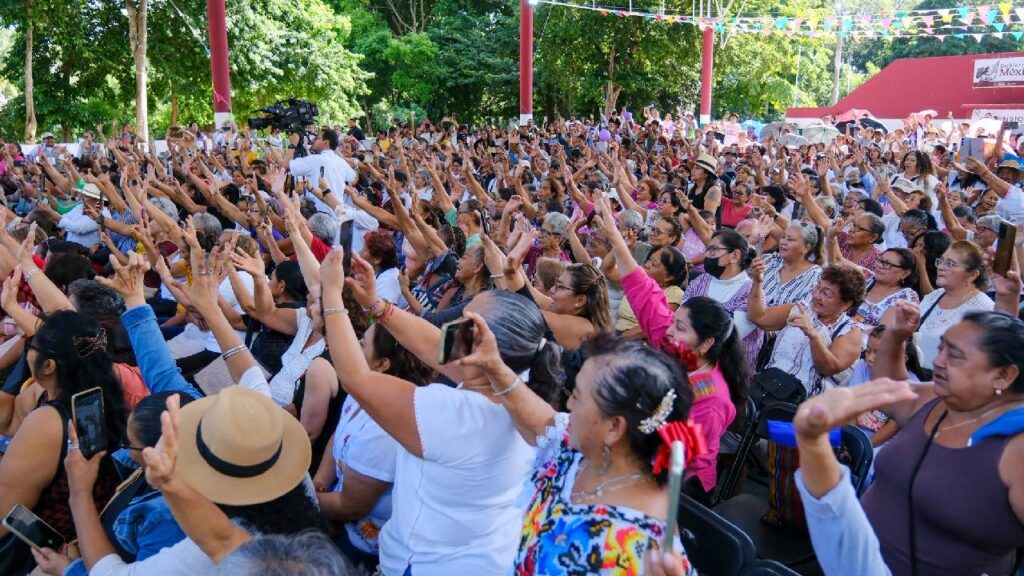 ¡Cumplimos! Cuando estuve por aquí en campaña dije que todas las mujeres de 60 a 64 años iban a tener un apoyo y hoy es una realidad”, afirmó durante un encuentro con mujeres en Puerto Morelos.