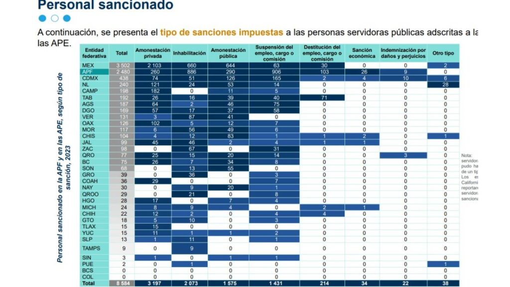 En 2022, antes del fortalecimiento de los Órganos Internos de Control, solo se sancionó a seis funcionarios: cuatro inhabilitados, uno destituido y uno multado.