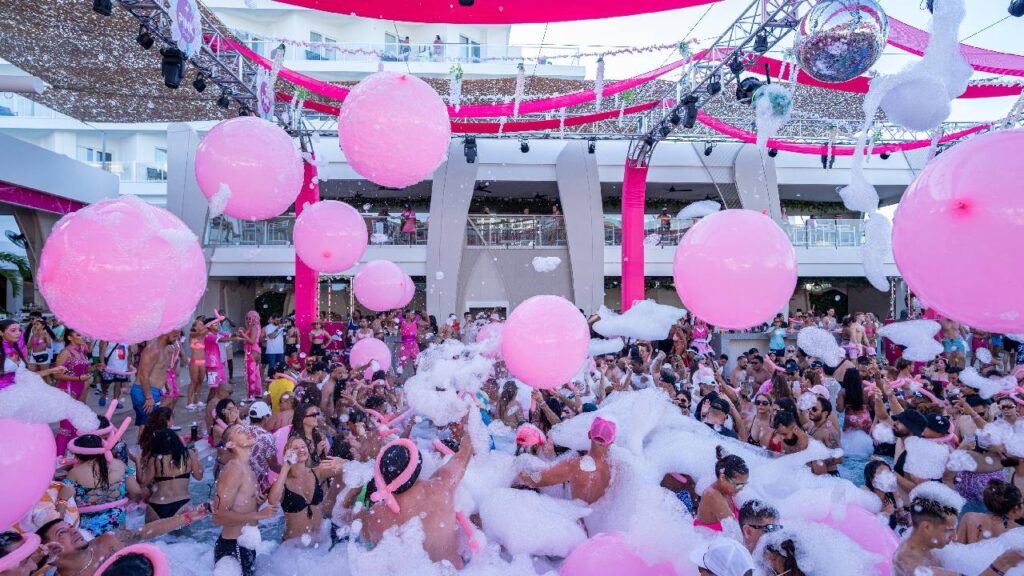 Los huéspedes también tienen acceso a las famosas RIU Party, que se realizan en el Hotel Riu Caribe con temáticas semanales: White Party, Jungle Party, Pink Party y Neon Party.