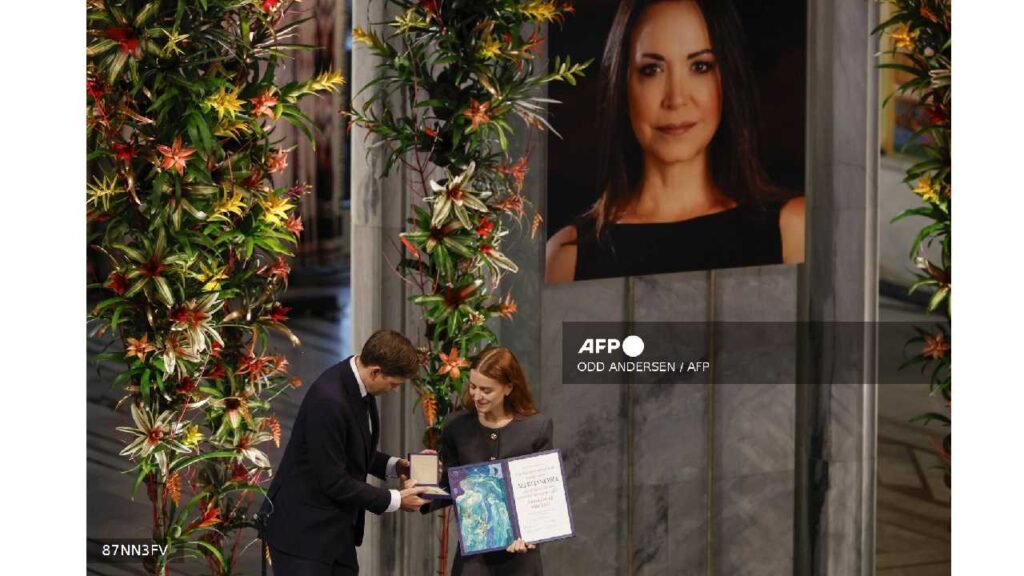 La ausencia de María Corina Machado marcó la ceremonia del Premio Nobel de la Paz en Oslo, luego de que su hija, Ana Corina Sosa Machado, recibiera el galardón en su nombre.