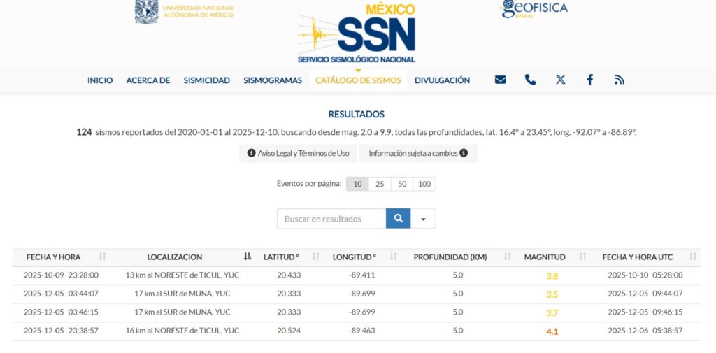 De acuerdo con el Servicio Sismológico Nacional (SSN), los dos primeros movimientos ocurrieron cerca de Muna, con magnitudes de 3.5 y 3.7, durante la noche del 5 de diciembre. Un tercer sismo, de magnitud 4.1, se registró el día siguiente en Ticul. Aunque no se reportaron daños, los episodios reactivaron el debate académico sobre la actividad geológica de la región.