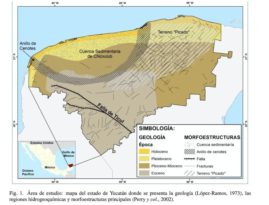 Entre estas estructuras destaca la Falla de Ticul, identificada como la fuente de movimientos recientes. A ella se suman la Falla de Holbox y la Falla de Río Hondo, que conforman un amplio sistema tectónico. En el sur de Quintana Roo, este sistema se expresa en un corredor de estructuras escalonadas donde coinciden lagunas, bahías, cenotes y aguadas que corresponden a fracturas profundas del subsuelo.