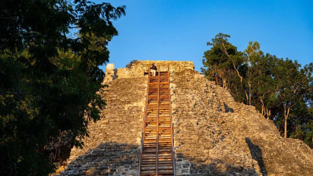 La escalinata de Nohoch Mul forma parte de la estructura más alta del norte de la península de Yucatán y simboliza el poder político y religioso que tuvo Cobá durante su periodo de mayor esplendor.