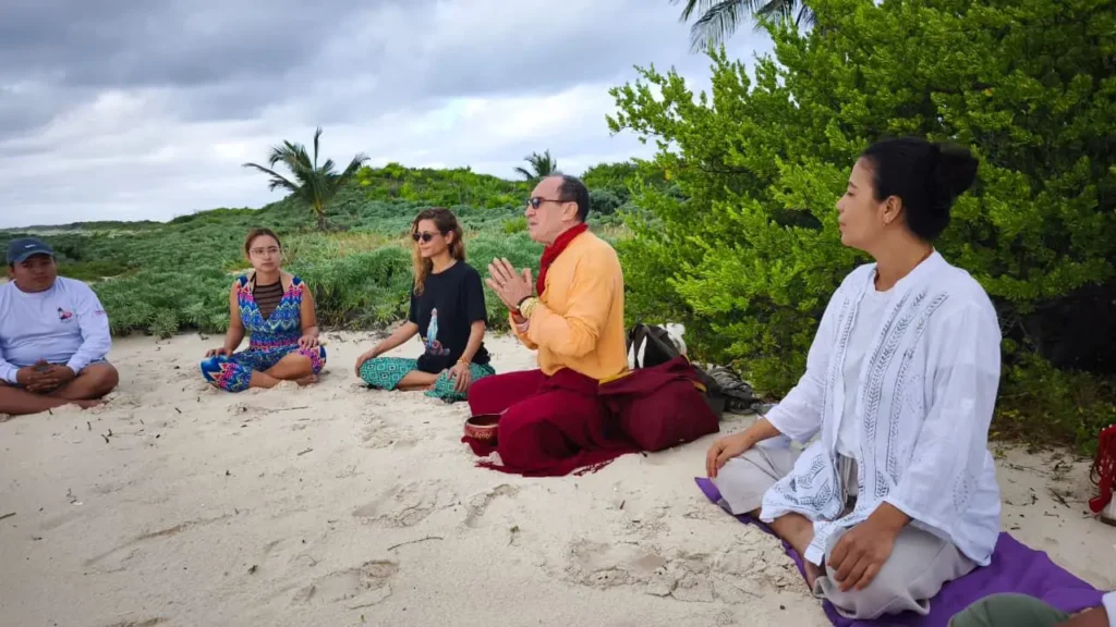 La actividad inició con una meditación guiada por el maestro Luis Miguel Pérez Martín, quien invitó a las y los asistentes a reconectar con la naturaleza y reflexionar sobre el valor de los ecosistemas marinos y costeros.