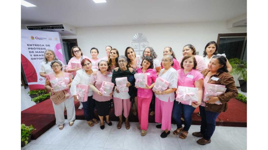 Durante la entrega de 66 prótesis mamarias y 124 brasieres ortopédicos a mujeres del municipio de Othón P. Blanco, la gobernadora Mara Lezama Espinosa destacó que este apoyo va más allá de lo médico, al representar una herramienta para la recuperación emocional y la reconciliación con el propio cuerpo tras enfrentar el cáncer de mama.