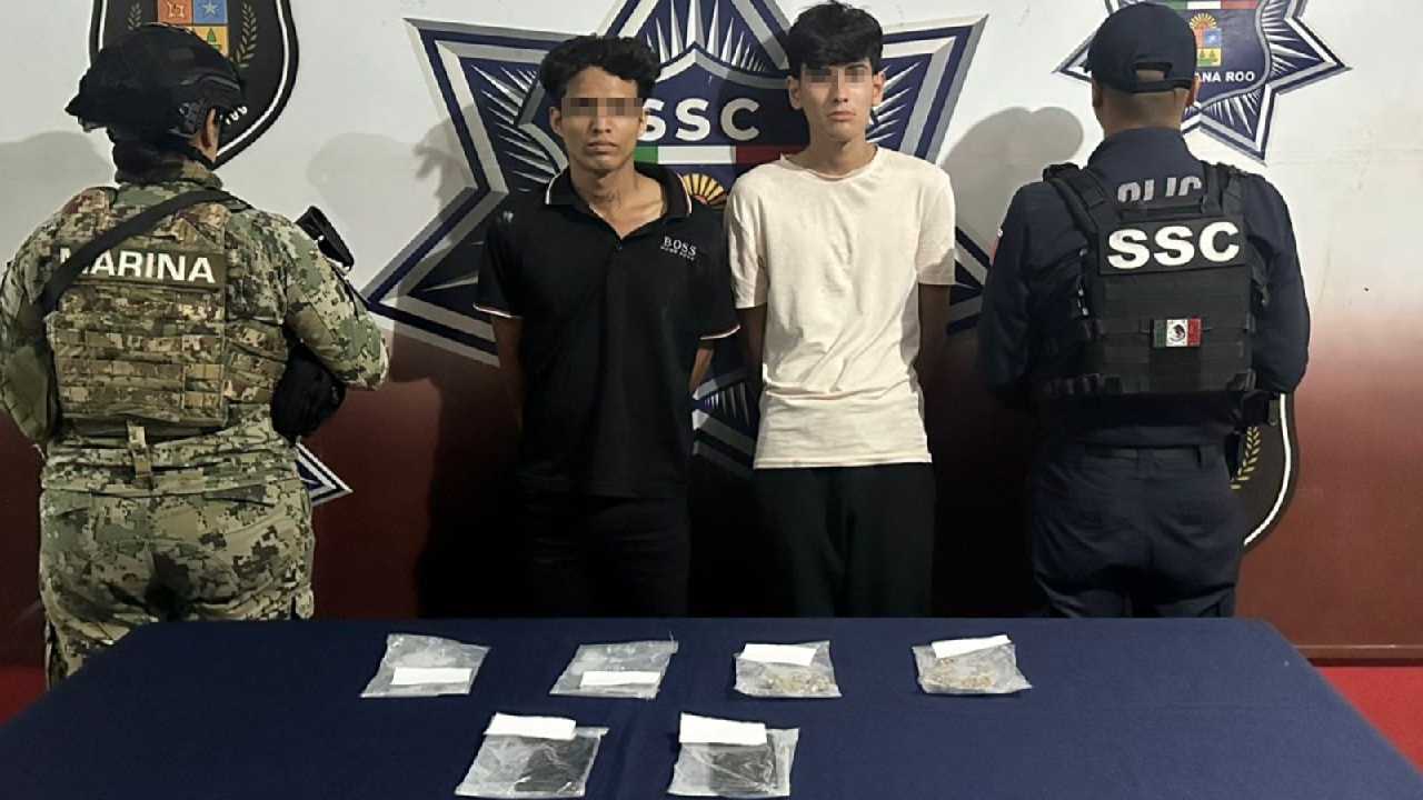 Dos presuntos distribuidores de droga fueron detenidos en el fraccionamiento La Guadalupana, en Cancún, durante un operativo de vigilancia enfocado en la prevención del delito.
