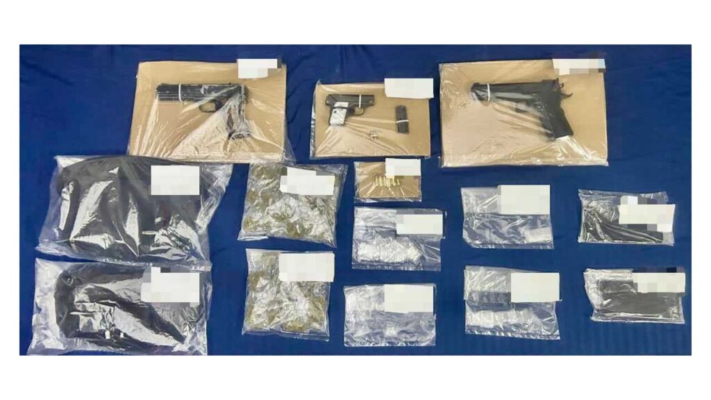 La intervención se realizó sobre la calle Paseo El Maple, en la supermanzana 247, donde las autoridades llevaron a cabo una inspección preventiva. Como resultado, se logró el aseguramiento de presunta droga, armas y diversos objetos utilizados para la distribución de narcóticos.