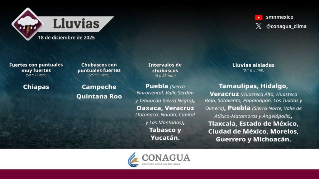 — CONAGUA Clima (@conagua_clima) December 19, 2025