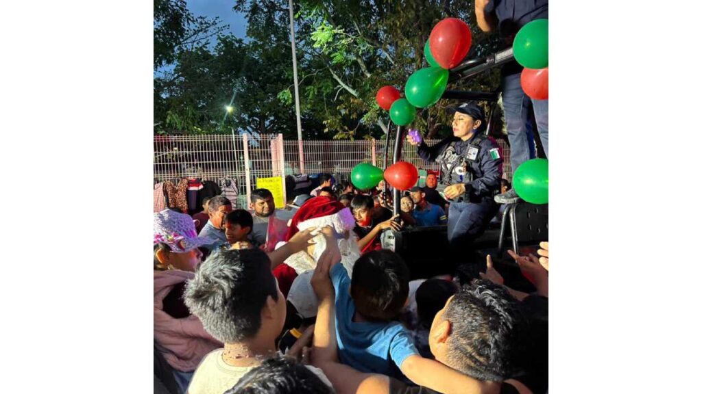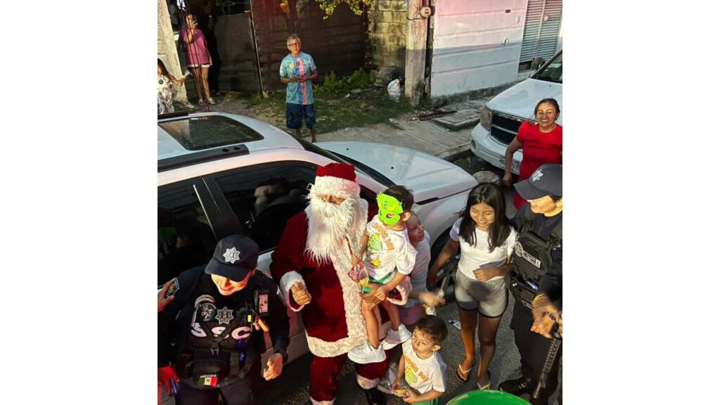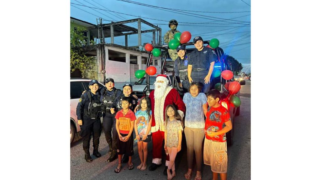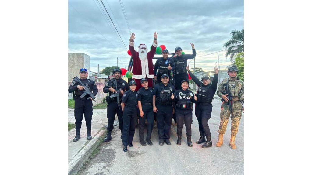 A días de la Navidad y en un gesto que refleja cercanía y compromiso social, policías de Chetumal protagonizaron una jornada solidaria al llevar sonrisas y esperanza a niñas y niños de distintas colonias de la capital del estado, en el marco de las celebraciones decembrinas.