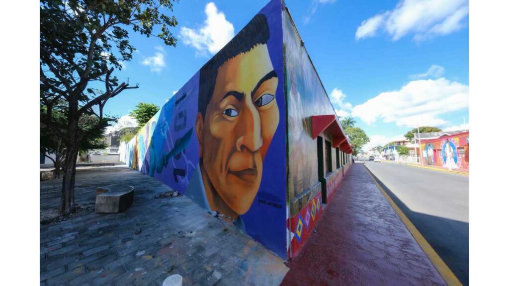 El proyecto Caminos Ancestrales, desarrollado en Felipe Carrillo Puerto, se inspiró en el modelo de Senderos Seguros impulsado a nivel nacional y se adaptó a la realidad local mediante murales que retratan pasajes clave de la Guerra de Castas, así como escenas de la vida cotidiana, la gastronomía y la cosmovisión maya.