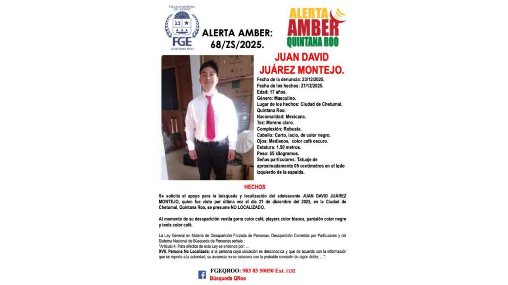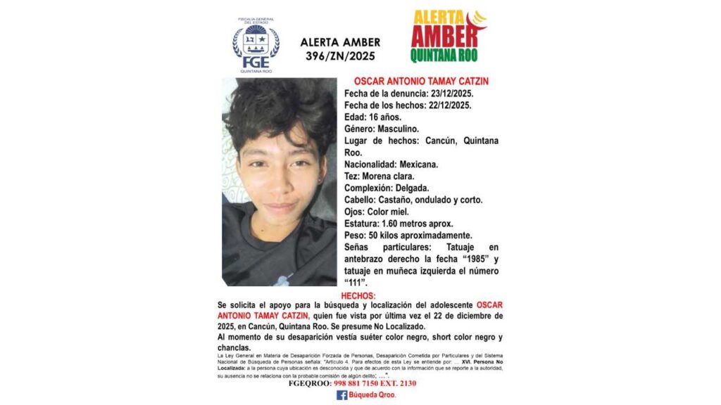 De acuerdo con la información oficial de la FGE de Quintana Roo, estos son los cinco menores desaparecidos, sus municipios y algunos datos personales relevantes: