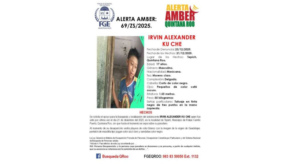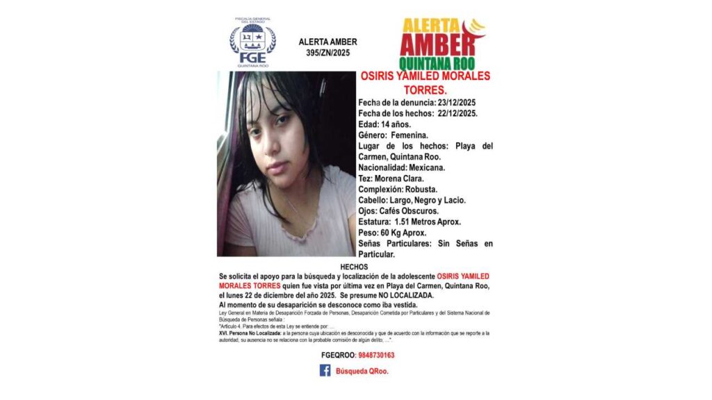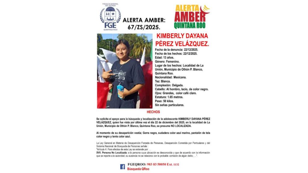 Desaparecen 5 menores de edad en Quintana Roo, lo que activó fichas de búsqueda, Alerta Amber y Protocolo Alba por parte de la Fiscalía General del Estado (FGE).