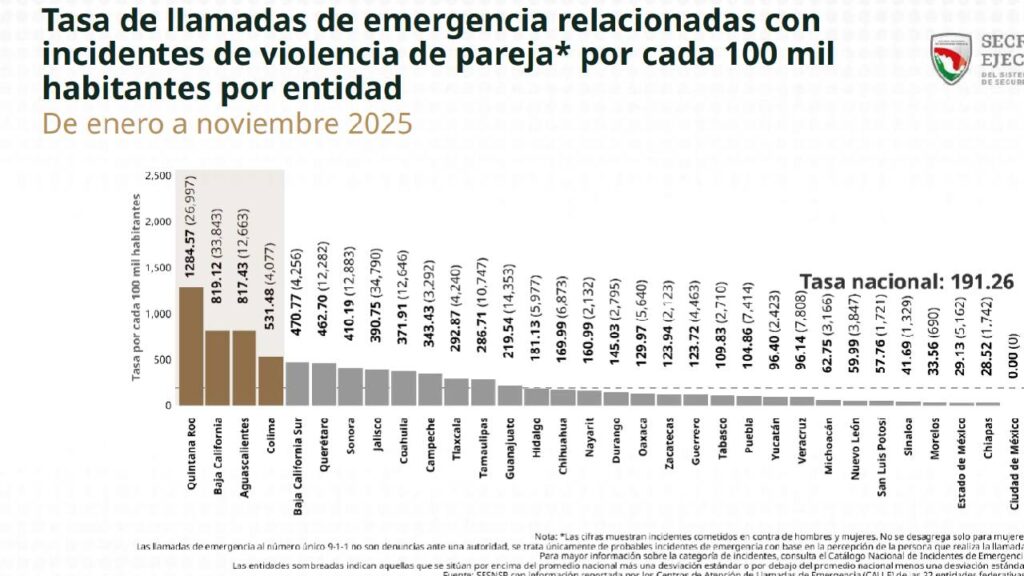 Quintana Roo lidera el país en violencia de pareja contra mujeres con casi 27 mil llamadas al 911 durante 2025, según datos del SESNSP. Dale clic aquí.