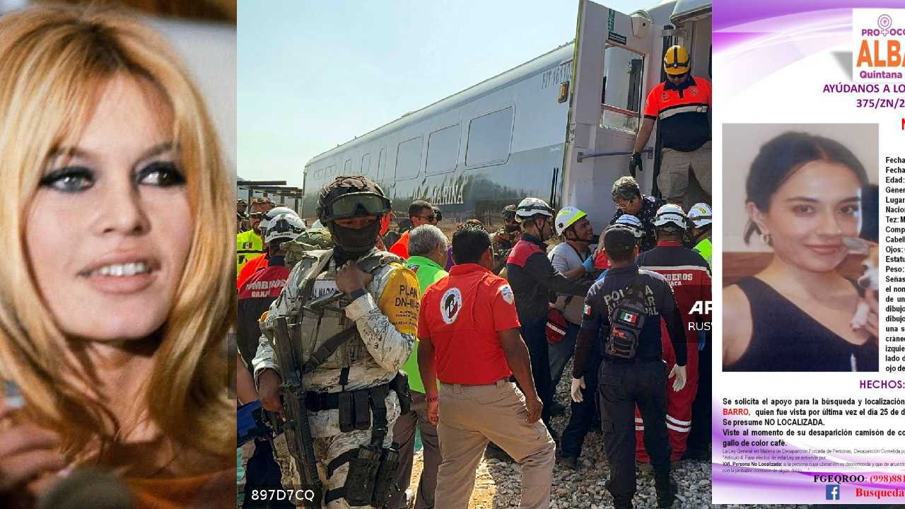 Últimas noticias. Muere Brigitte Bardot; descarrila tren; hallan a joven sin vida. Credit: Especial