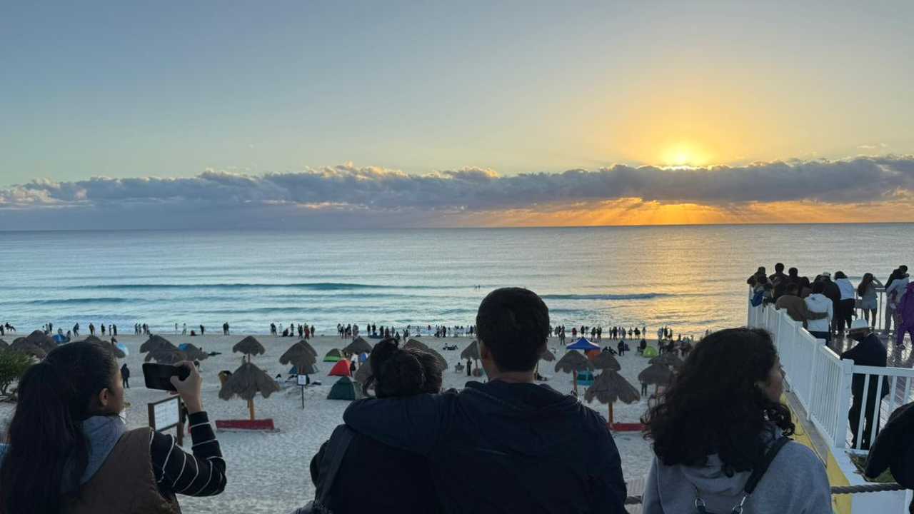 Fue una noche de fiesta que se prolongó la madrugada, hasta el amanecer de ese 1 de enero de 2026. Cientos de turistas nacionales, internacionales y locales y en un clima frío disfrutaron del primer amanecer en playa Delfines de Cancún. Dale clic aquí.