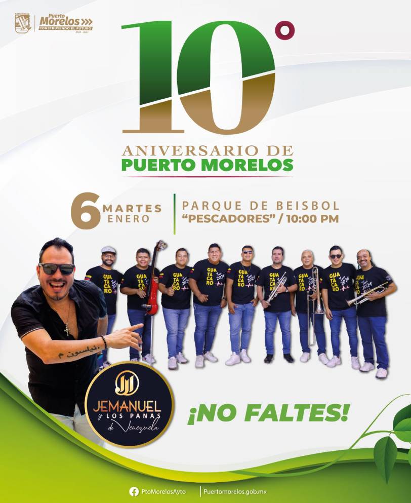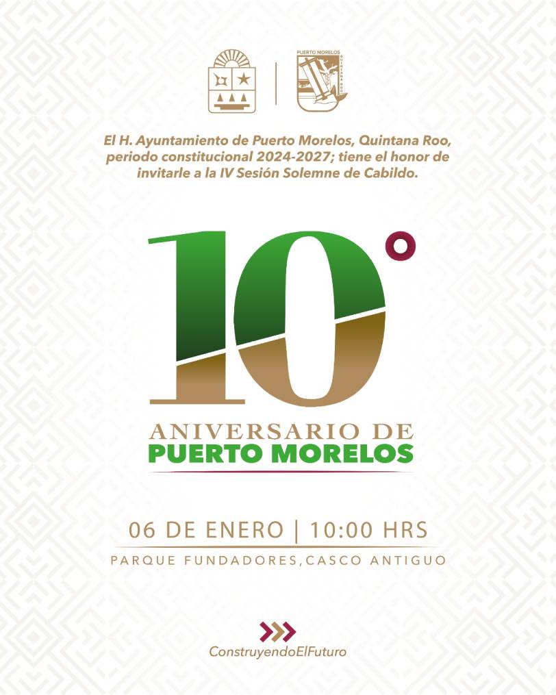 Puerto Morelos, Quintana Roo, se alista para celebrar el 10.º aniversario de la creación del municipio, fecha histórica que será conmemorada el próximo martes 6 de enero.