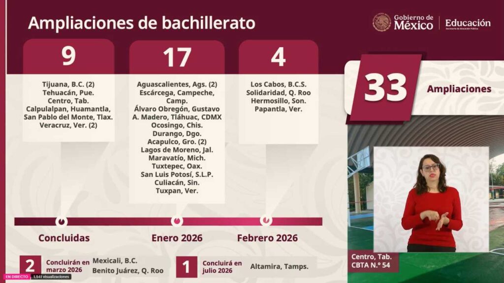 Esto como parte de una estrategia nacional para fortalecer la educación media superior y ampliar las oportunidades para jóvenes en distintas regiones del país.