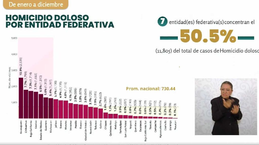 La funcionaria subrayó que, aunque Guanajuato concentra el mayor número de homicidios, algunos estados mostraron reducciones históricas.