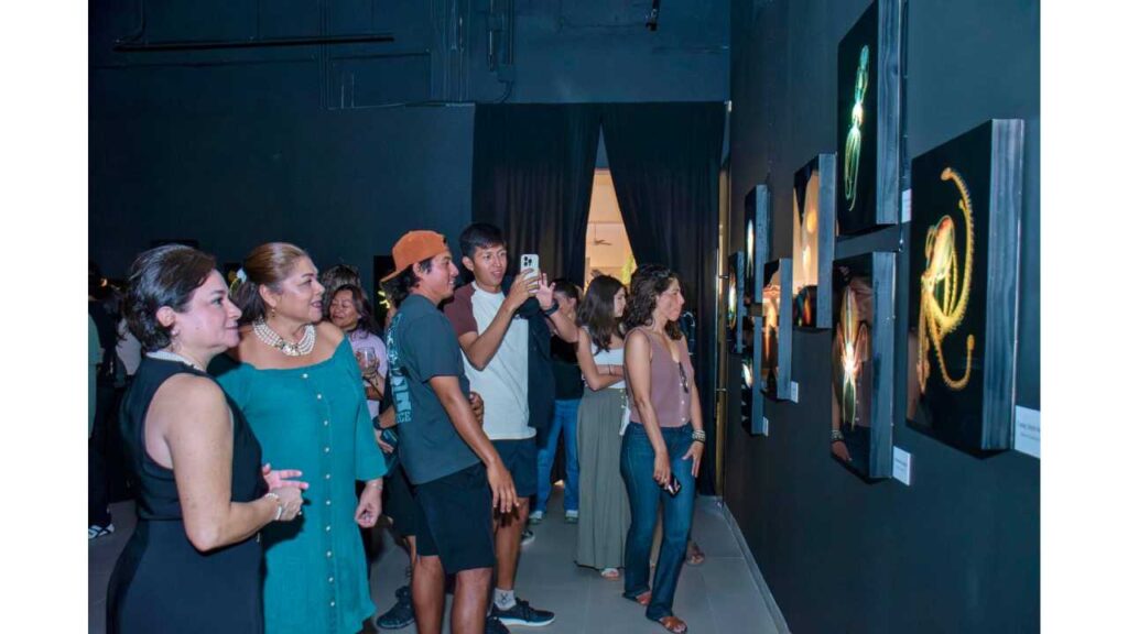 Impulsada por la Fundación de Parques y Museos de Cozumel (FPMC), la muestra ofrece una experiencia inmersiva a través de fotografías y proyecciones submarinas nocturnas que permiten conocer la vida que habita en las profundidades del océano.