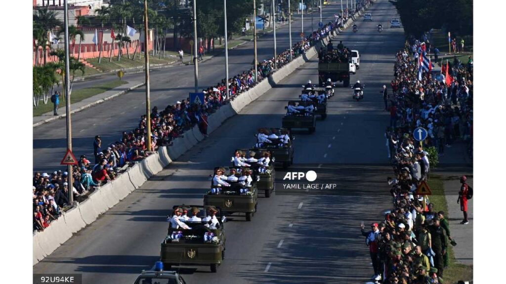 Los restos fueron trasladados en caravana hasta la sede del Ministerio de las Fuerzas Armadas Revolucionarias, cerca de la Plaza de la Revolución, donde la ciudadanía pudo rendir homenaje.
