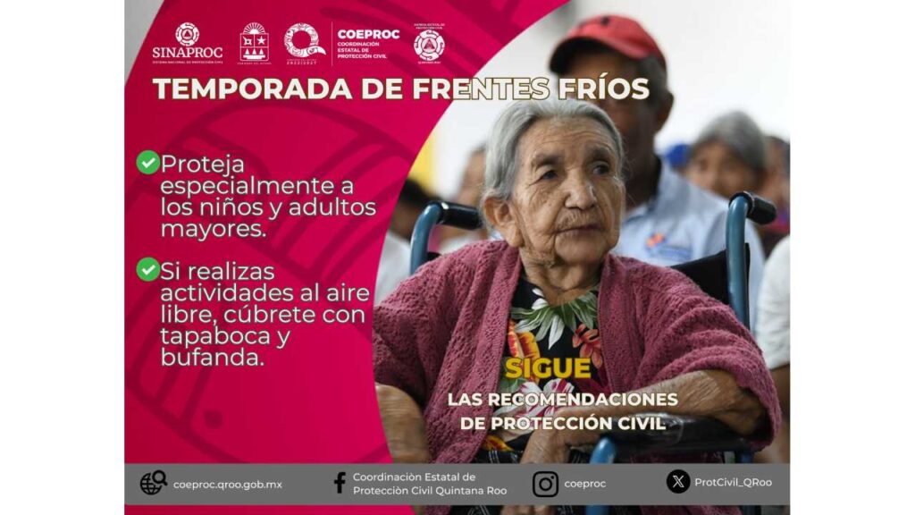 El frío que se registra en Quintana Roo durante la temporada invernal ha llevado a la Coordinación Estatal de Protección Civil (Coeproc) a emitir una serie de recomendaciones preventivas para reducir riesgos a la salud, especialmente entre los grupos más vulnerables de la población.