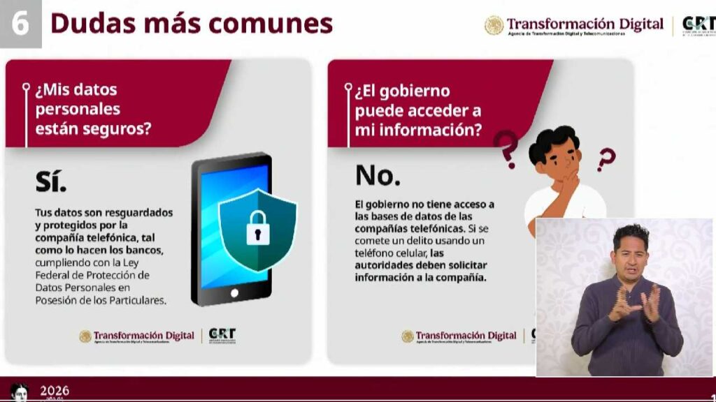 Merino aclaró que el proceso no incluye datos biométricos y que la información será resguardada únicamente por las empresas de telecomunicaciones, conforme a la Ley Federal de Protección de Datos Personales.
