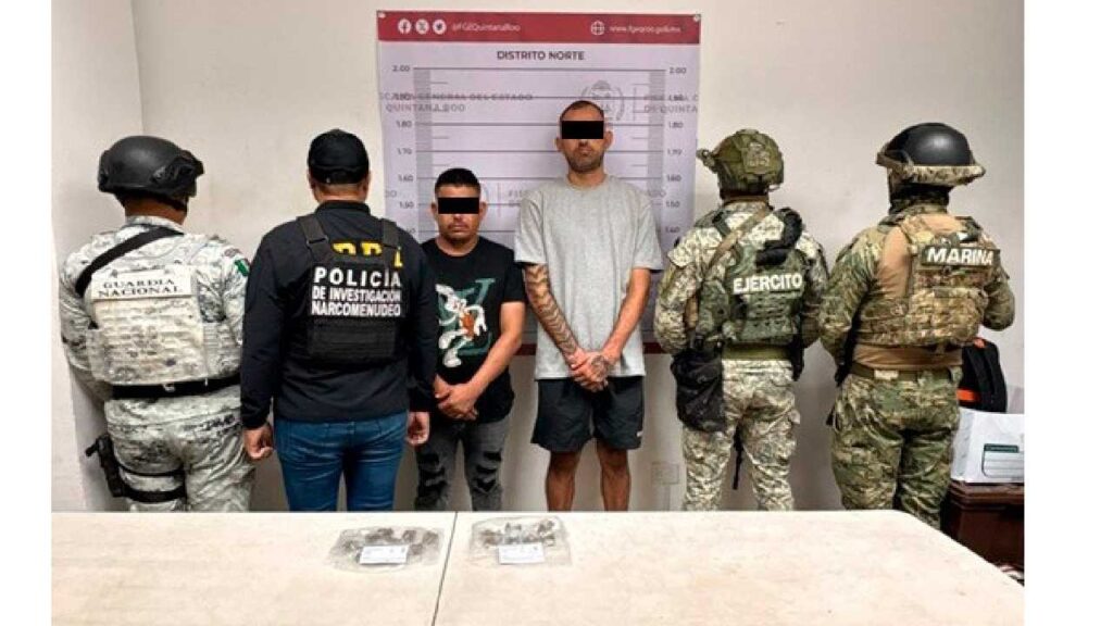 Asimismo, tras el cumplimiento de cinco órdenes de cateo en los municipios de Benito Juárez, Othón P. Blanco y Tulum, donde además fueron detenidas tres personas por delitos contra la salud.