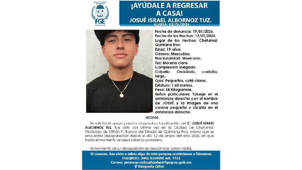 Los casos corresponden a un joven visto por última vez en Chetumal, una mujer cubana-mexicana reportada en Cancún desde diciembre de 2025 y un hombre desaparecido recientemente en el municipio de Benito Juárez, éste último ya localizado.