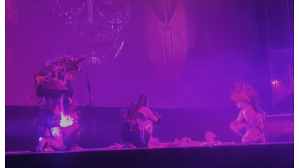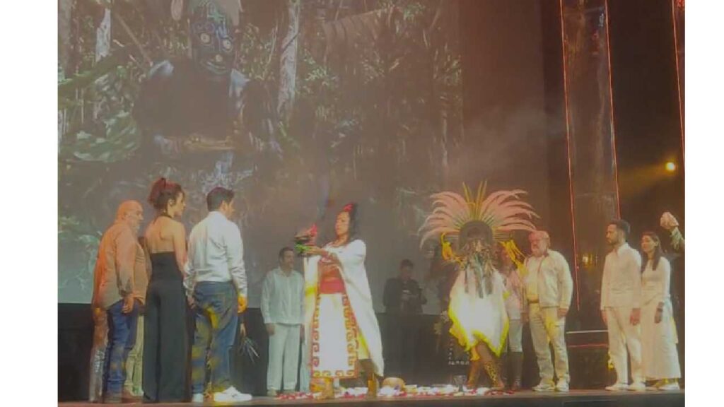 Como parte del evento en el Cine Capitol de la Gran Vía, se realizó un ritual ancestral maya con danza y música prehispánica.