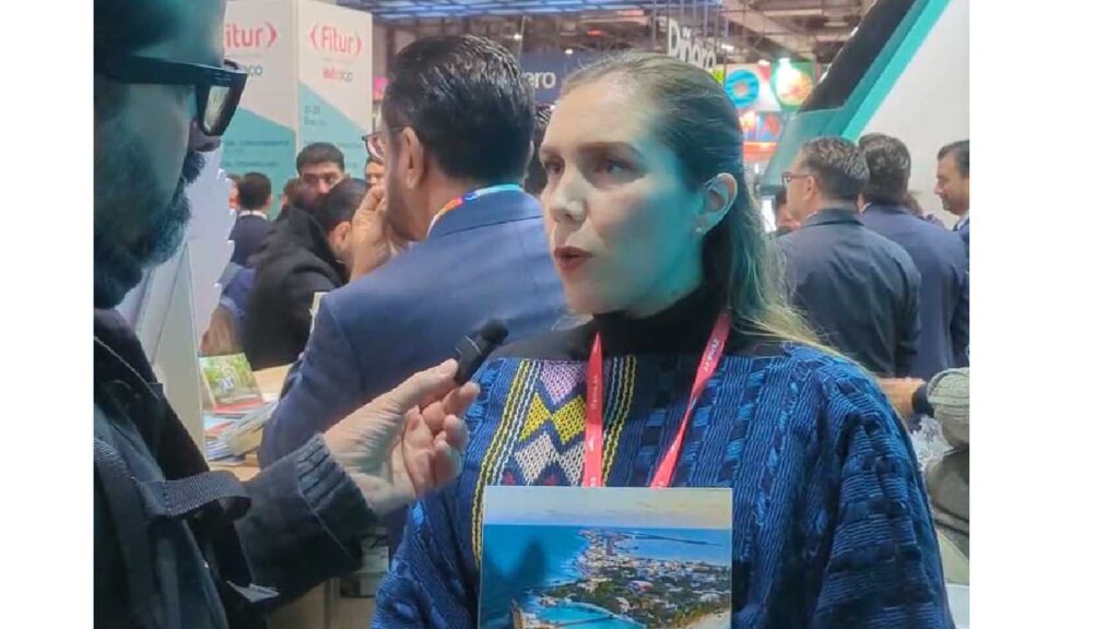 Atenea Gómez, alcaldesa de Isla Mujeres, en entrevista desde FITUR . Credit: Especial