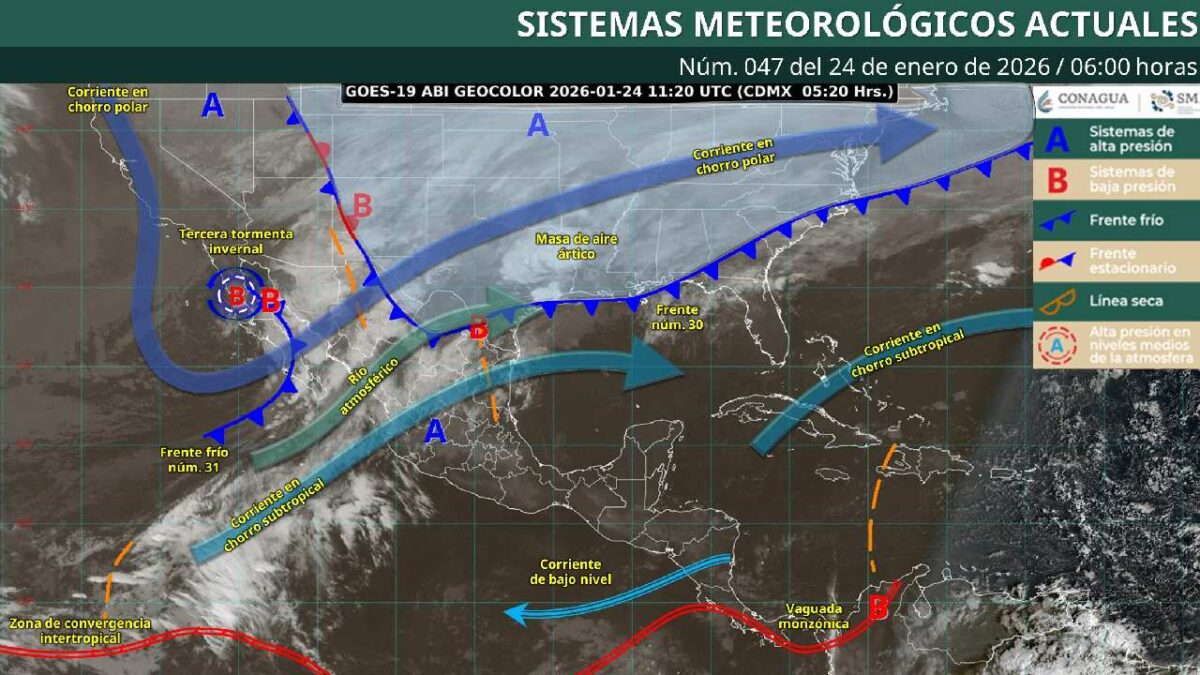 El frente frío número 30 se mantendrá con características de estacionario sobre el noreste del país e interactuará con el frente frío número 31, localizado en el norte y noreste de México, lo que contribuirá a la estabilidad atmosférica en la península de Yucatán.