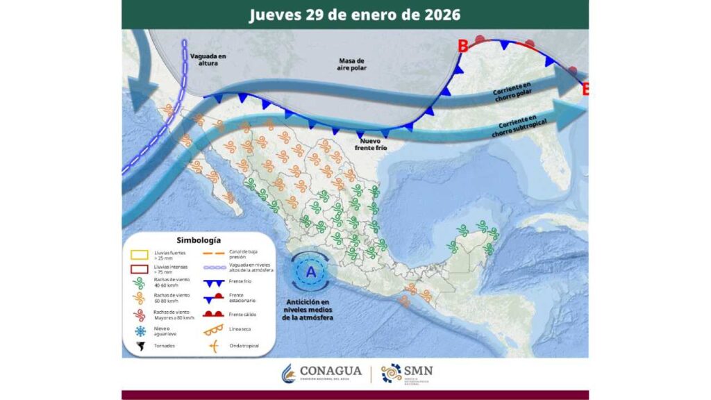 Este jueves, autoridades federales alertaron sobre el ingreso del Frente Frío Número 32, el cual provocará lluvias intensas, oleaje elevado y un evento de Norte fuerte a intenso.