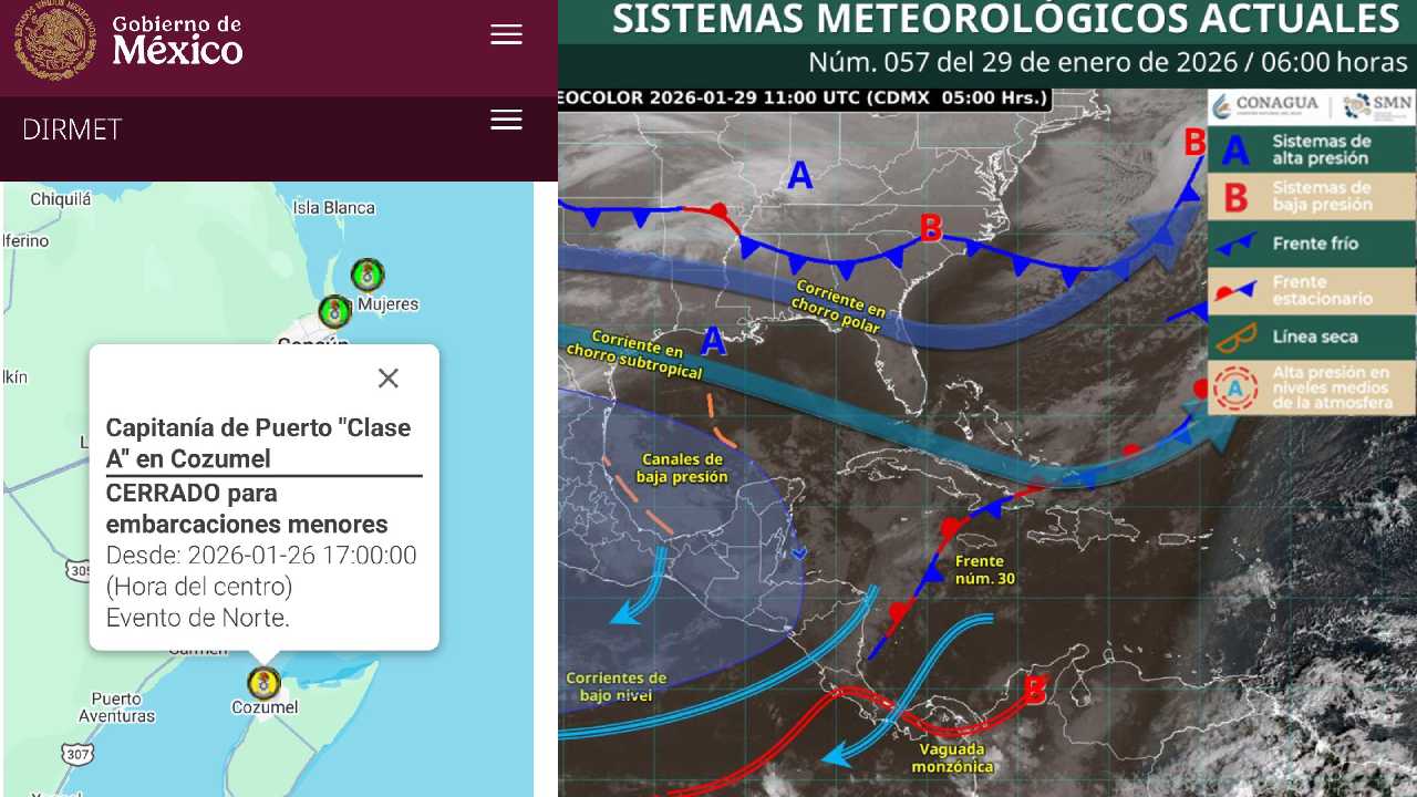 El miércoles, la Secretaría de Marina informó sobre el cierre de diversos puertos del Golfo de México y el Caribe mexicano, asociados al Frente Frío No. 30: