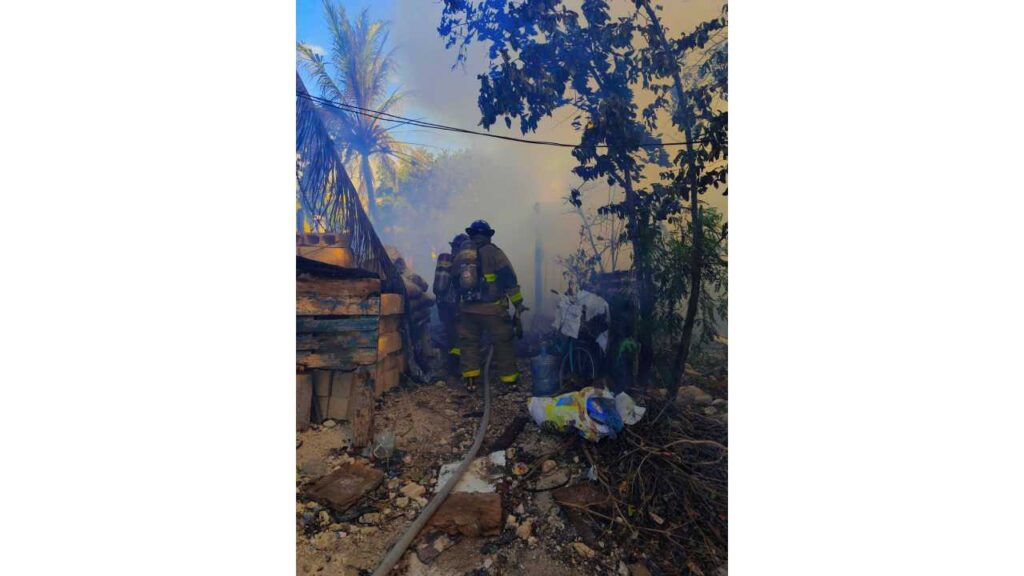 Un fuerte incendio de una vivienda se registró en Cancún sin personas lesionadas. Credit: Especial