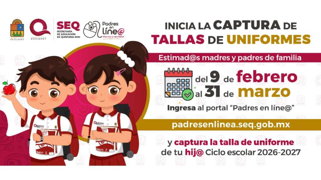 La Secretaría de Educación de Quintana Roo informó que ya está habilitada la captura de tallas de uniformes para estudiantes de escuelas públicas del estado.