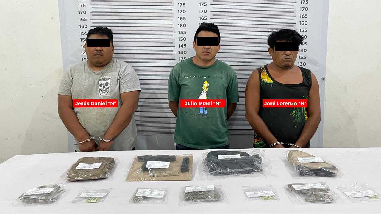 Tras identificarse como agentes y aplicar una inspección preventiva, detuvieron en flagrancia a Jesús Daniel “N”, Julio Israel “N” y José Lorenzo “N”.