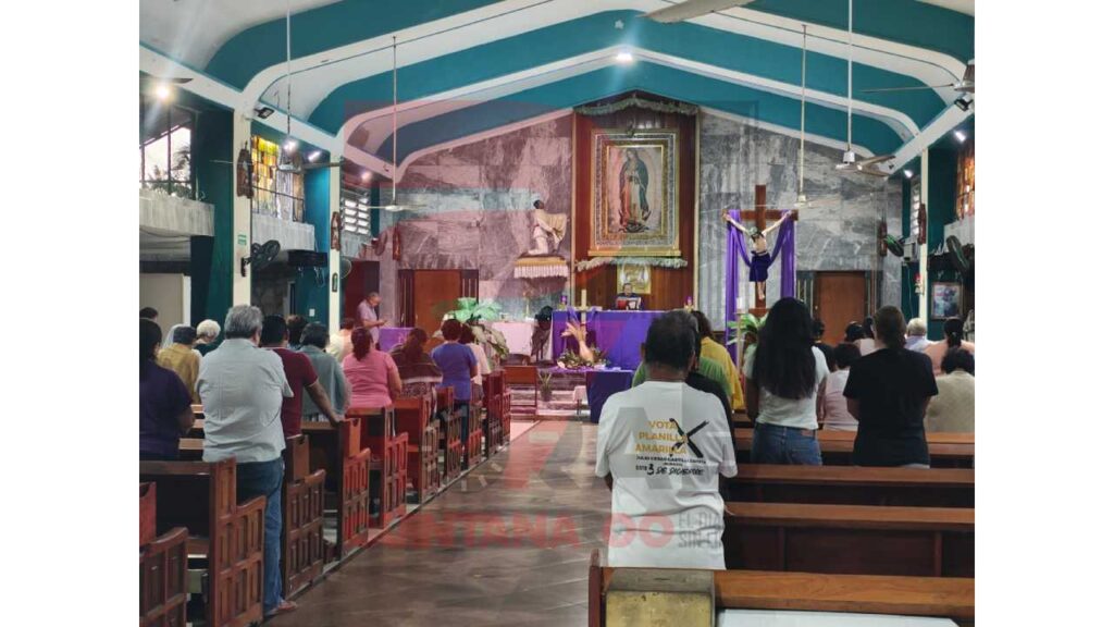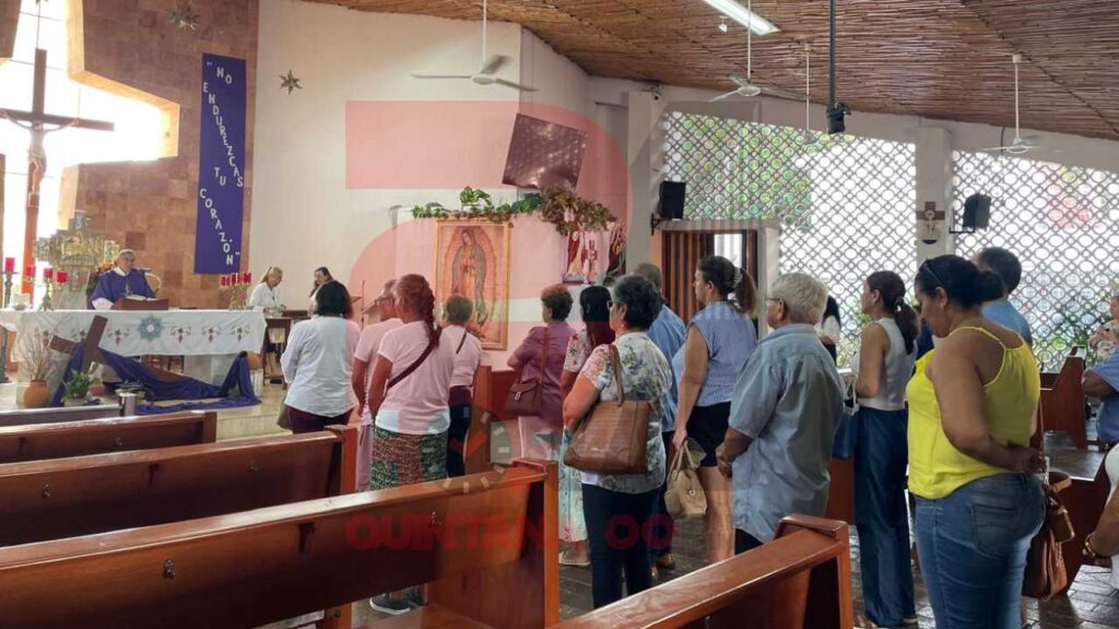 Asimismo en la iglesia de Cristo Rey, en el Parque de las Palapas en Cancún, la gente acudió a los horarios establecidos para participar en la ceremonia.