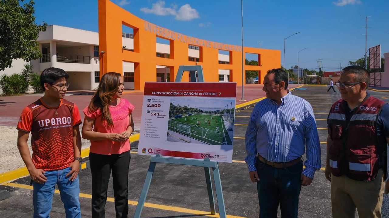 La Universidad Politécnica de Quintana Roo contará con una nueva cancha de fútbol 7, tras el anuncio realizado por la gobernadora Mara Lezama Espinosa durante su visita al campus en Cancún.