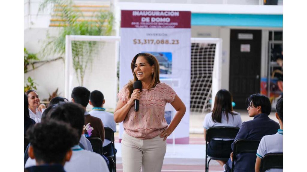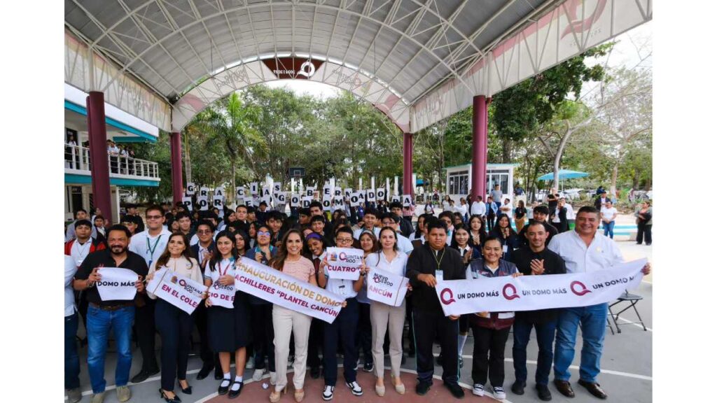 La gobernadora Mara Lezama Espinosa encabezó la entrega de un nuevo domo en el Colegio de Bachilleres Plantel Cancún Cuatro, una obra esperada por más de 15 años que fortalece la infraestructura educativa en Quintana Roo.