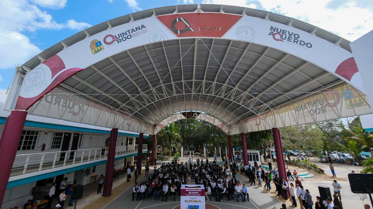 La gobernadora Mara Lezama Espinosa encabezó la entrega de un nuevo domo en el Colegio de Bachilleres Plantel Cancún Cuatro, una obra esperada por más de 15 años que fortalece la infraestructura educativa en Quintana Roo.