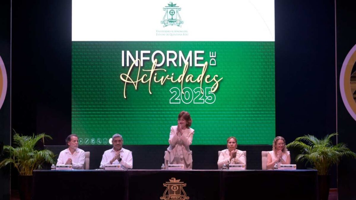 En Sesión Solemne del Consejo Universitario, la rectora Natalia Fiorentini Cañedo presentó el Informe de Actividades 2025 de la Universidad Autónoma del Estado de Quintana Roo (Uqroo), donde subrayó la recuperación del diálogo institucional, el liderazgo regional de la casa de estudios y los desafíos presupuestales y académicos para 2026.