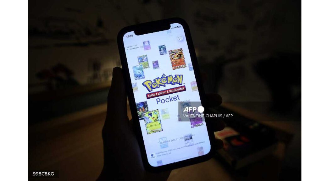 Esta fotografía muestra un teléfono inteligente cuya pantalla muestra el nuevo juego para teléfonos inteligentes "Pokemon Trading Card Game Pocket", inspirado en las cartas de la franquicia París, el 19 de diciembre de 2024.