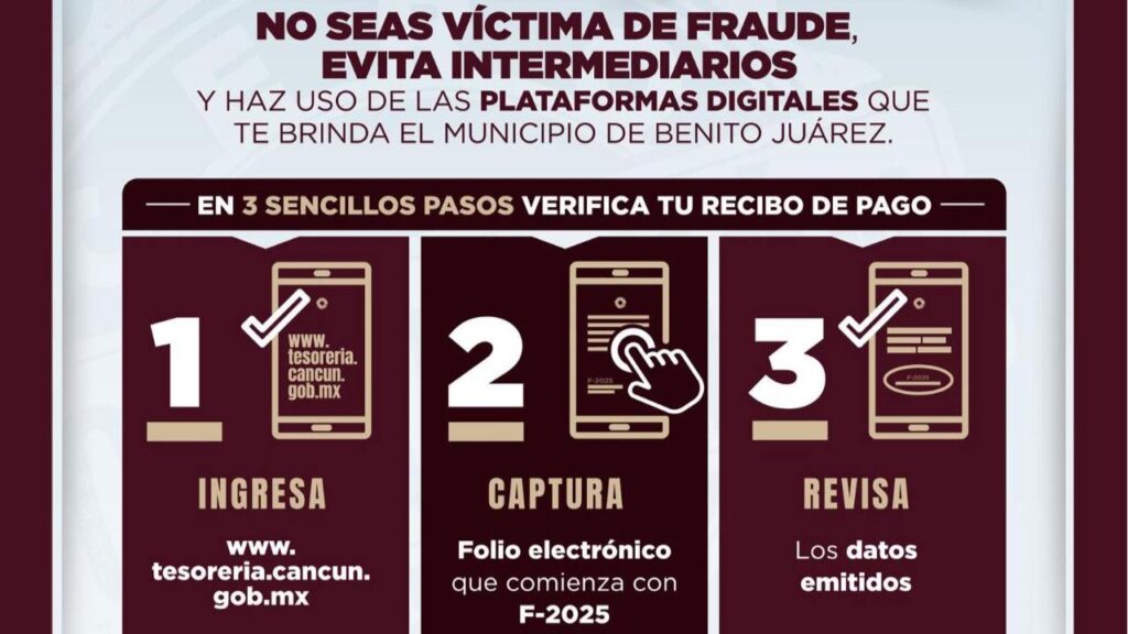 El Ayuntamiento de Benito Juárez impulsa la verificación digital de recibos en Cancún. Conoce cómo validar tu pago en línea y evitar fraudes. Dale clic aquí.