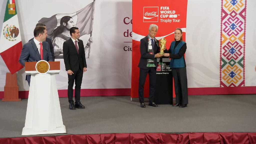 A 100 días del arranque de la Copa del Mundo 2026, la presidenta de México, Claudia Sheinbaum Pardo, recibió y levantó el trofeo que se entregará al campeón del torneo organizado por México, Estados Unidos y Canadá.