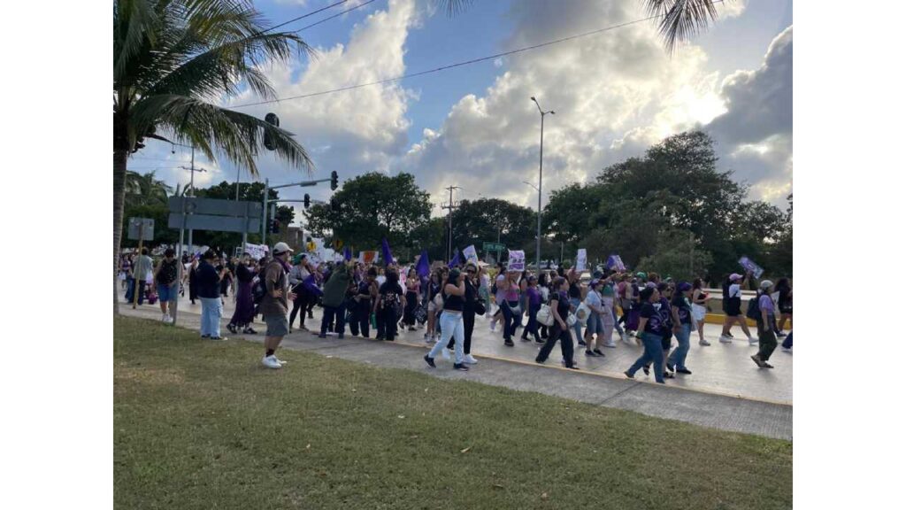 💜 Cerca de 2 mil mujeres participaron el domingo en la megamarcha por el Día Internacional de la Mujer (8M) en Cancún. La movilización, que se desarrolló de forma pacífica, recorrió varias de las principales avenidas de la ciudad para exigir el fin de la violencia de género,… pic.twitter.com/FoKvPaBXtg