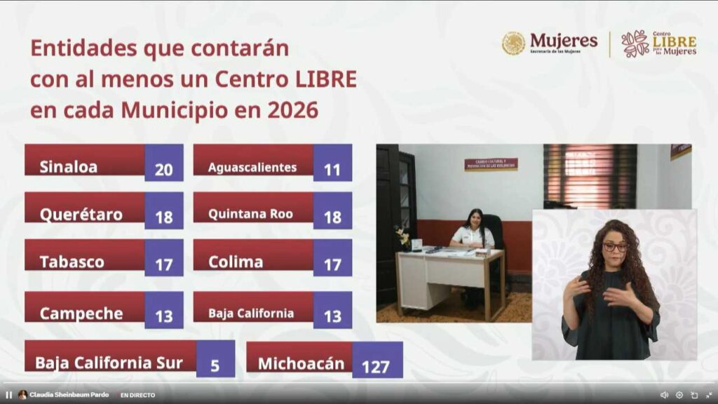En el encuentro, la titular de la Secretaría de las Mujeres, Citlali Hernández Mora, informó que en 2026 se instalarán 323 nuevos Centros Libre en distintos estados del país.